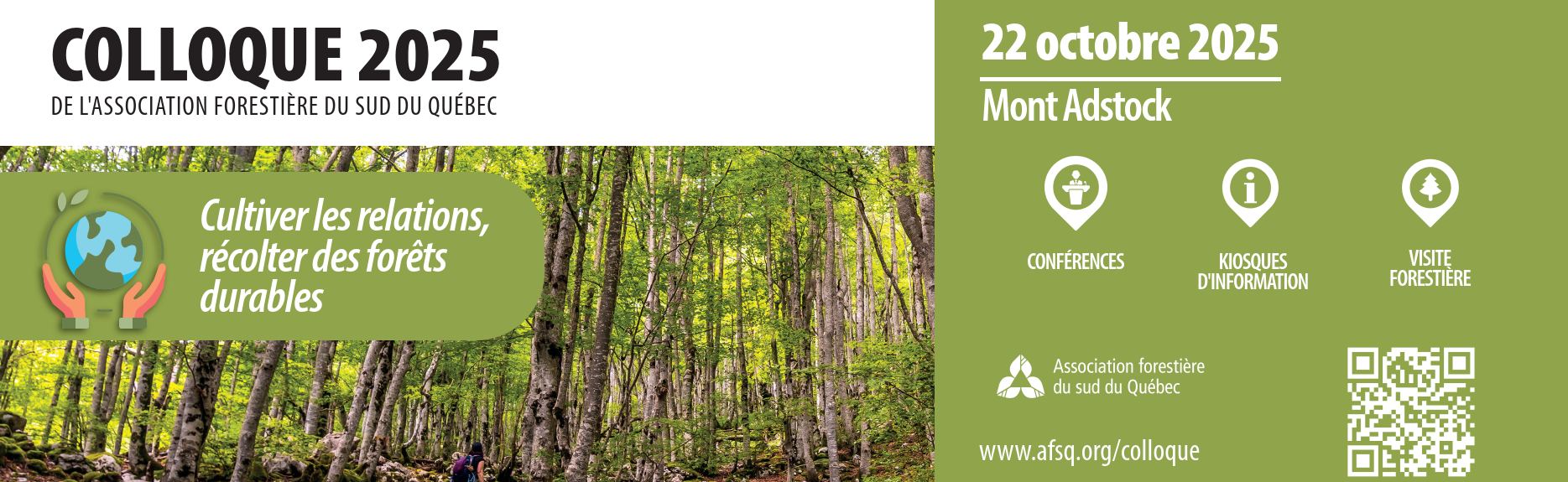 L’Association forestière du sud du Québec (AFSQ) tiendra son colloque le 22 octobre prochain au Mont Adstock sous le thème Cultiver les relations, récolter les forêts durables.